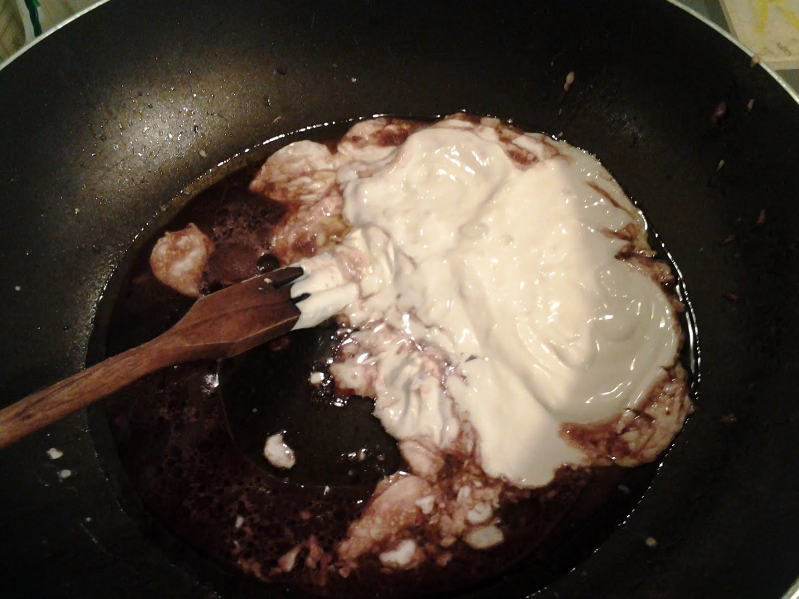 Nel fondo di cottura della carne,aggiungo il porto.Faccio ridurre a meta.Nella panna diluisco la farina.La unisco con il liquido di padella.Sale e pepe.