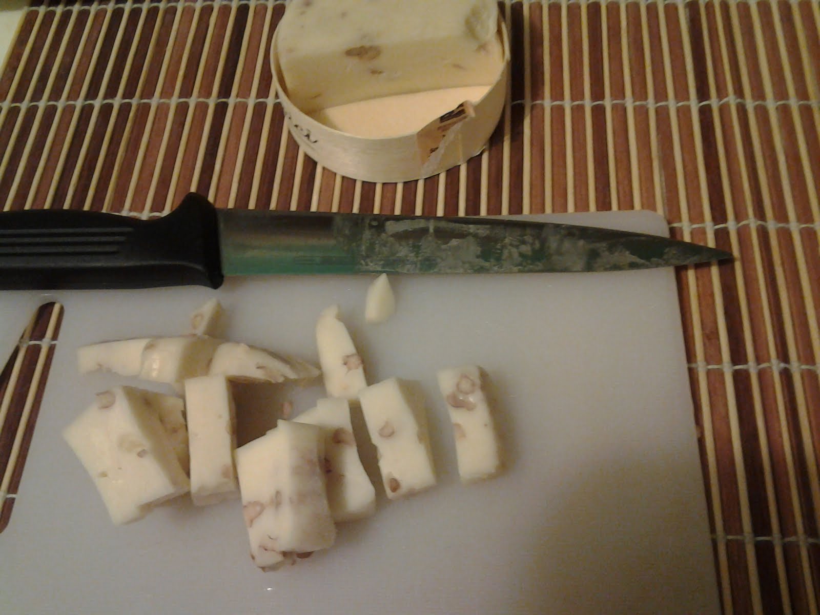 A cottura ultimata,aggiungo il formaggio alle noci a tocchetti,un pizzico di pepe e noce moscata.Se volete, aggiungete anche p.regg ma e abbastanza saporito il formaggio alle noci.